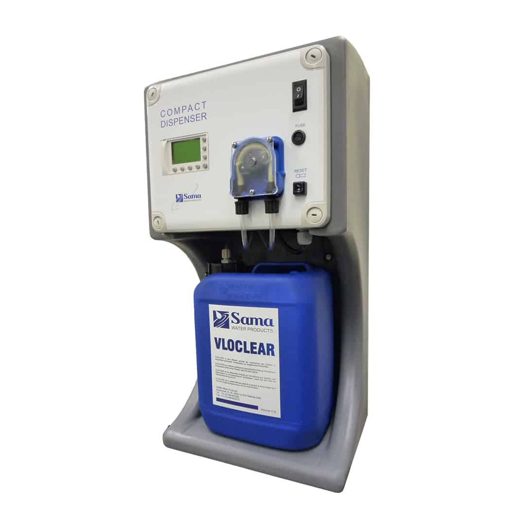 In many water based processes small amounts of additives have to be added regularly. For instance to prevent the building of biological growth. In many cases this is done by hand. As a result one adds too much or too little or, even worse, the adding is forgotten completely. Also it is not always very easy to add products by hand and in some cases irresponsible risks have to be taken. To solve these problems SAMAWater Products has developed the Compact Dispenser. With this universal dosing unit small amounts per unit of time can be dosed.