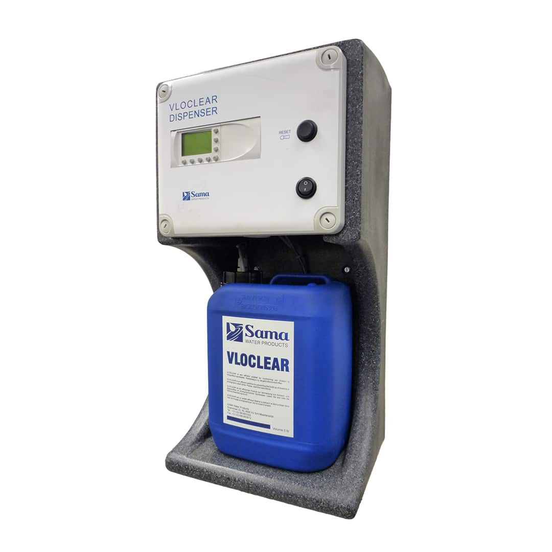 The suction pipe of the VLOCLEAR Dispenser is provided with a a float switch. As soon as the container is almost empty you are warned by an acoustical signal and a message on the LCD-screen.